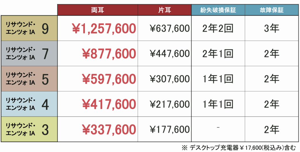 当店では、補聴器ご購入時、メーカー価格に割引を入れて販売しています。エンツォIAの割引後価格は下記となります。