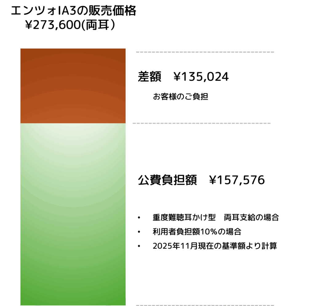 今回のテーマである「エンツォIA」は、② 一般販売の補聴器に分類されます。自費で差額負担が発生します。差額の詳細については記事後半で詳しく説明します。